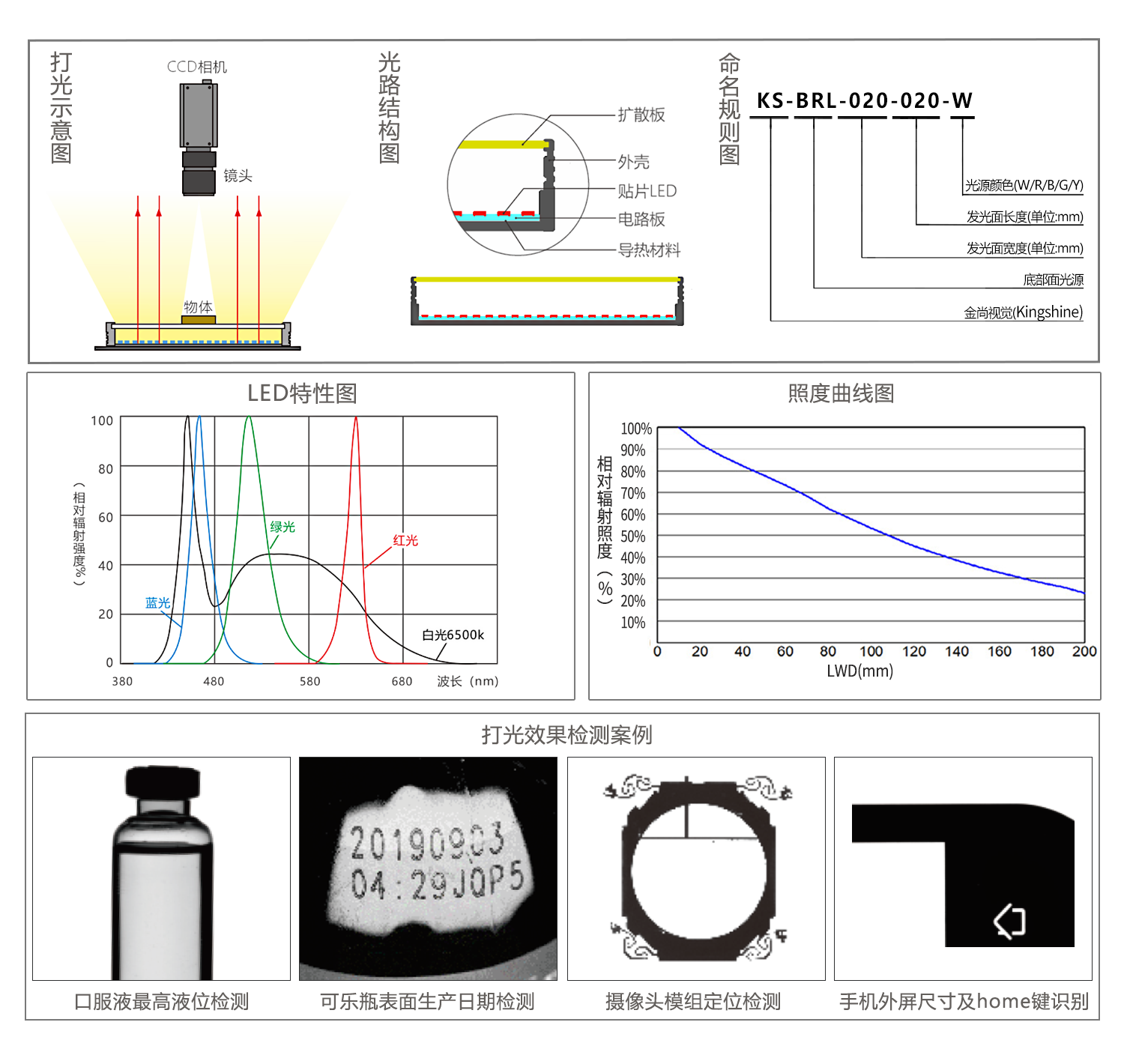 ??FB系列底部面光源,通過LED經結構優化后均勻布在光源底部,經漫反射后在表面形成一片均勻的照射光。面光源在增加光線控制膜后,光線的均勻性得到改善,適合需要均勻照明的應用場景。光線控制膜能夠將漫射的光線變成相對平行的光線,從而提高面光源的均勻性。它適用于檢測表面缺陷、文字識別、標志檢測等需要清晰表面細節的應用。