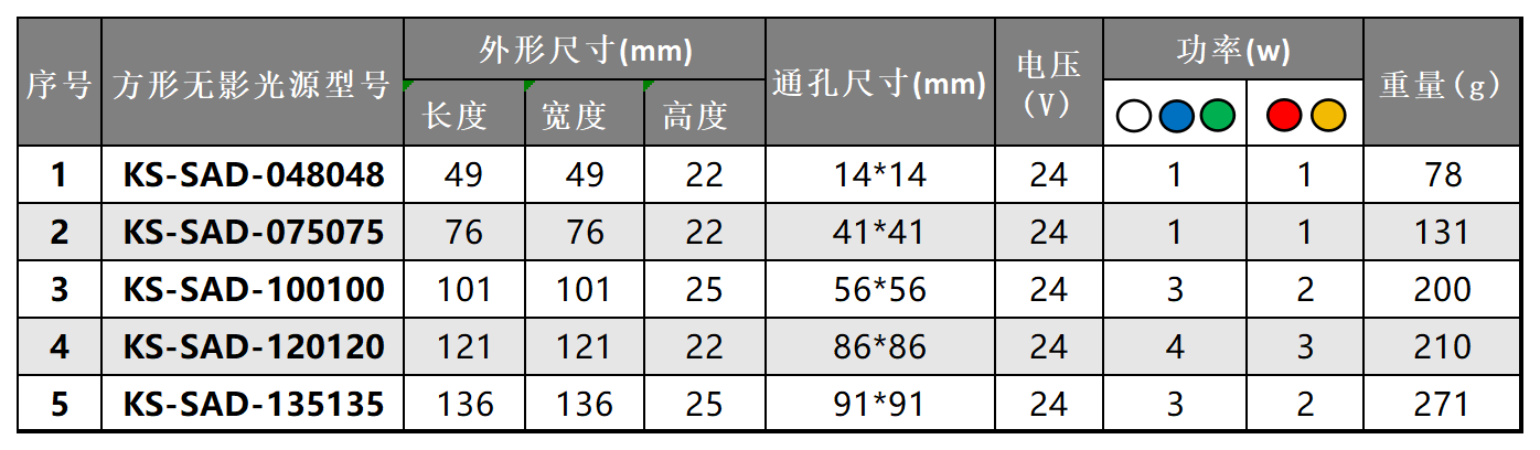 1.獨特的結構設計,可實現(xiàn)四面無影照射效果